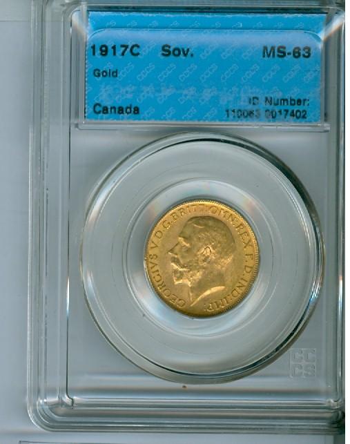 1917c Sovereign Gold CCCS MS63, strong lustre with good eye appeal.
