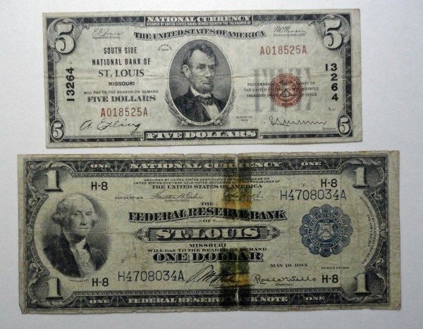 1918 $1.00 FRM ST.LOUIS, MO FAIR AND 1929 $5.00 SSNB ST. LOUIS, MI CH 13264