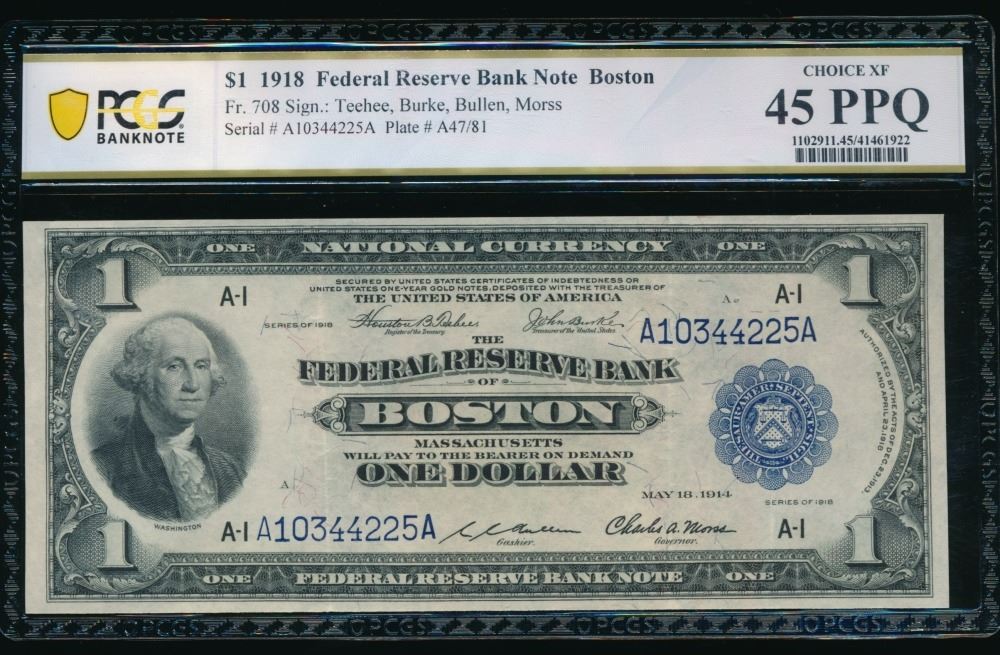 One 1918 $1 Boston FRBN PCGS 45PPQ.
