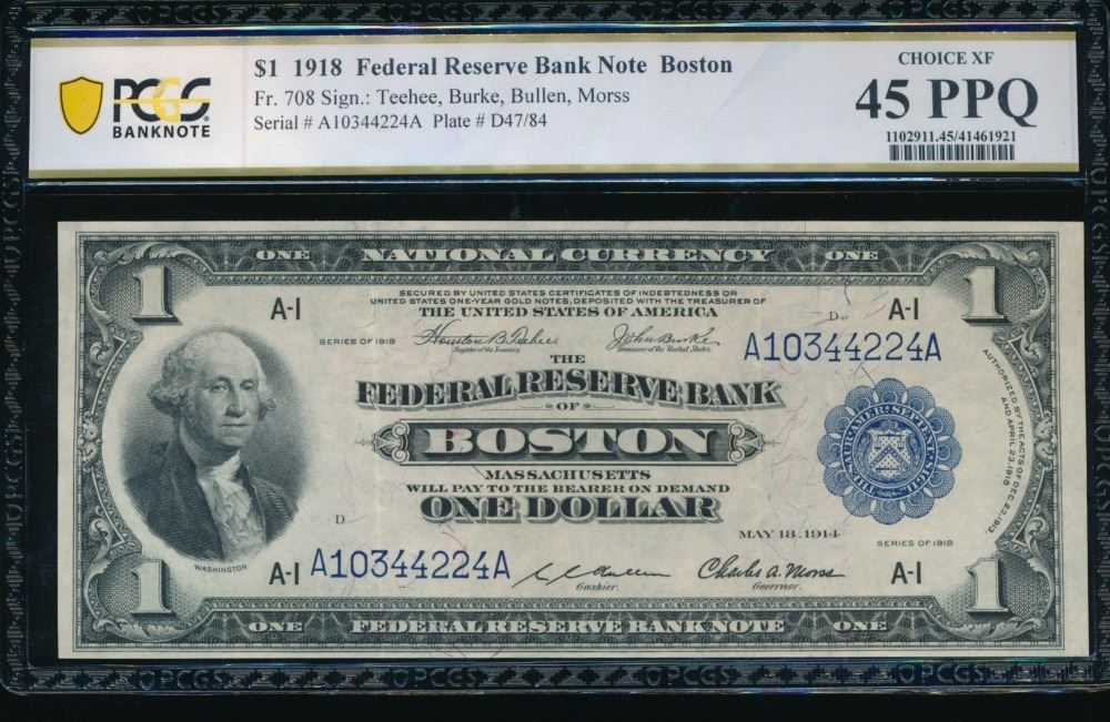 One 1918 $1 Boston FRBN PCGS 45PPQ.