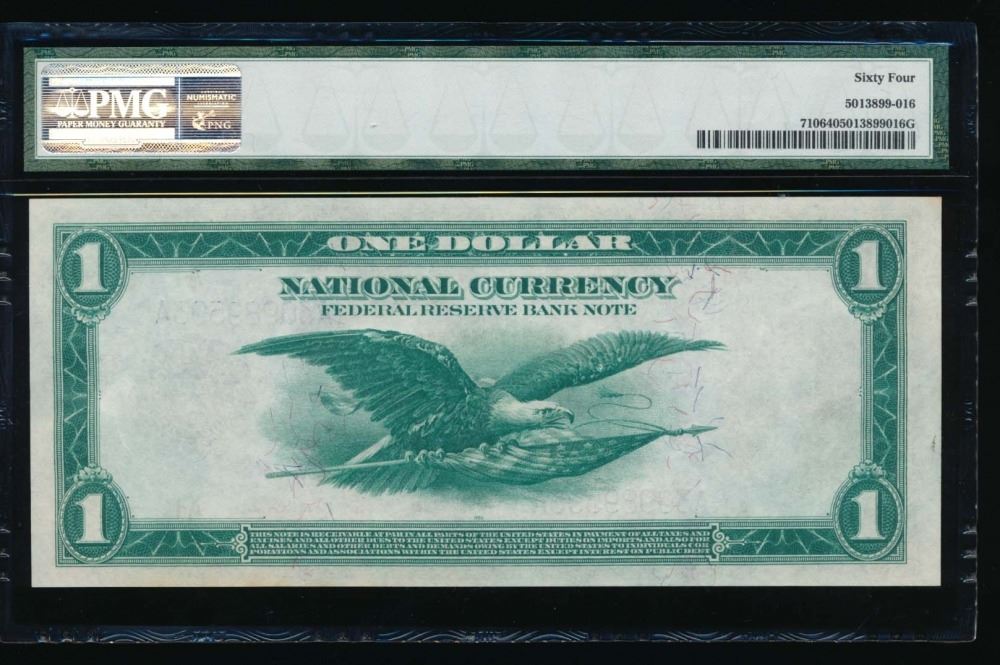 One 1918 $1 Boston Federal Reserve Bank Note PMG 64.