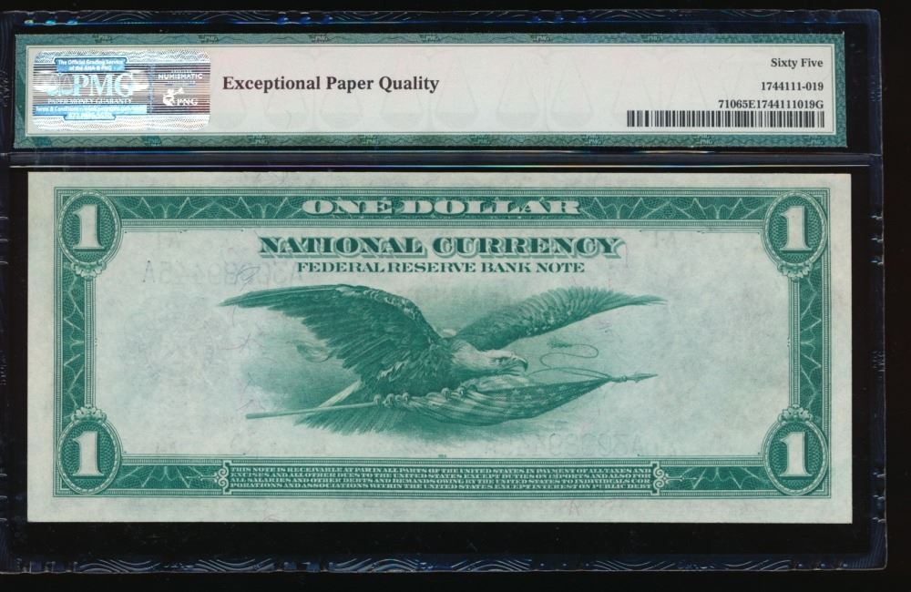 One 1918 $1 Boston Federal Reserve Bank Note PMG 65EPQ.