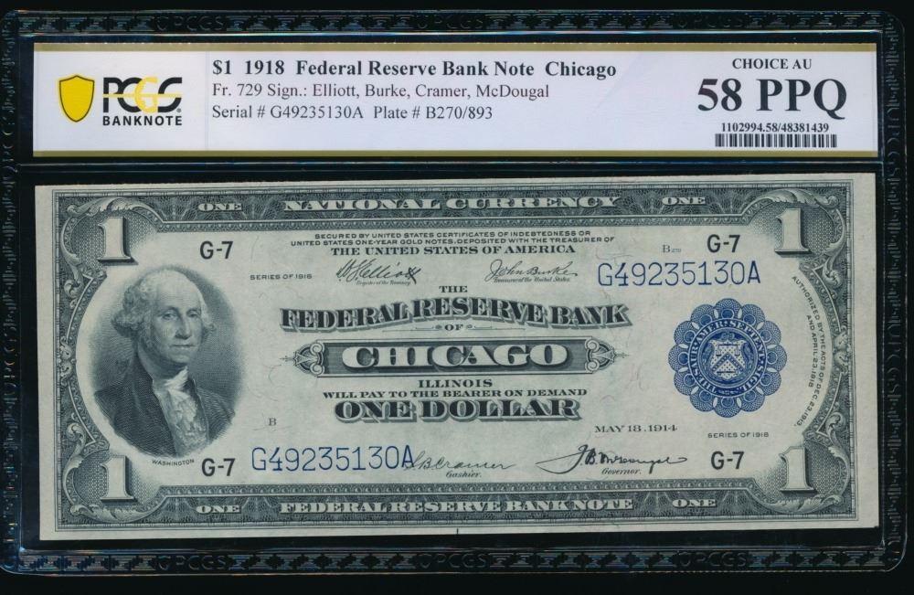 One 1918 $1 Chicago FRBN PCGS 58PPQ.