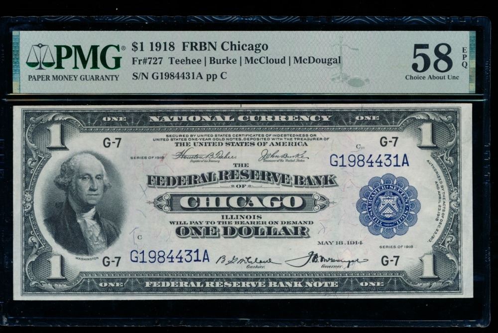 One 1918 $1 Chicago FRBN PMG 58EPQ.