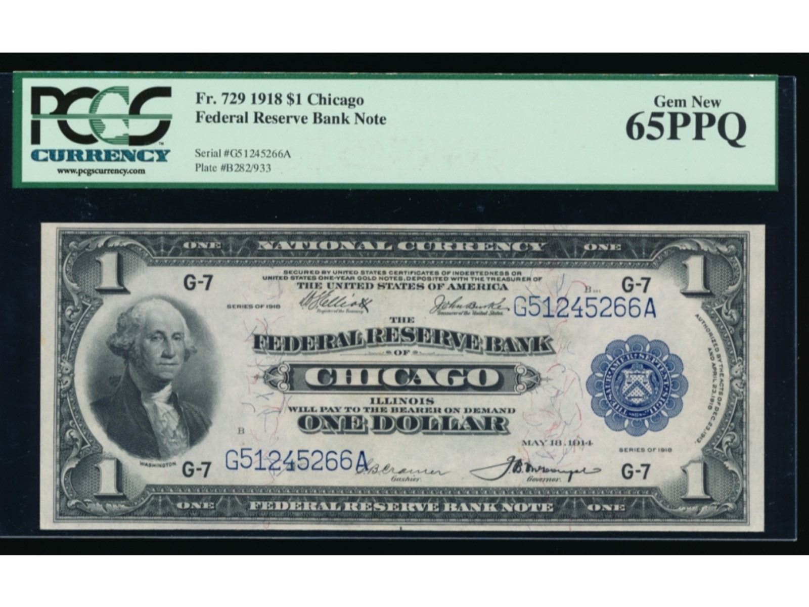 One 1918 $1 Chicago Federal Reserve Bank Note PCGS 65PPQ.