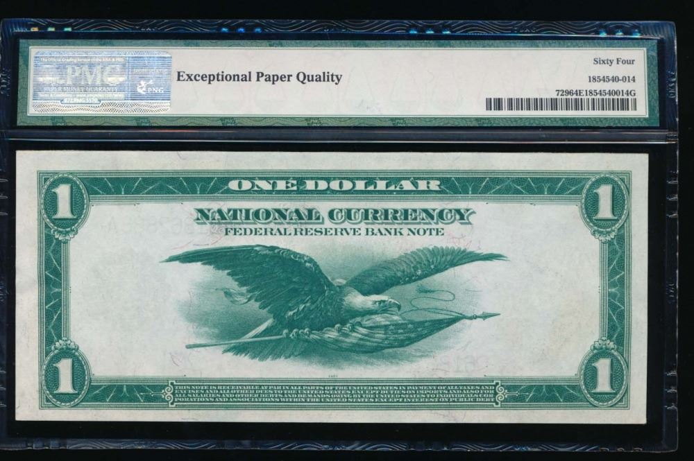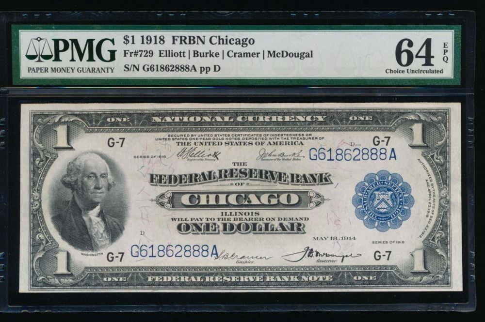 One 1918 $1 Chicago Federal Reserve Bank Note PMG 64EPQ.