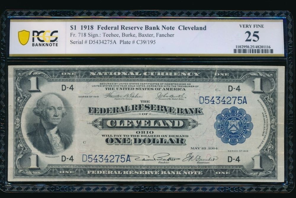 One 1918 $1 Cleveland FRBN PCGS 25.