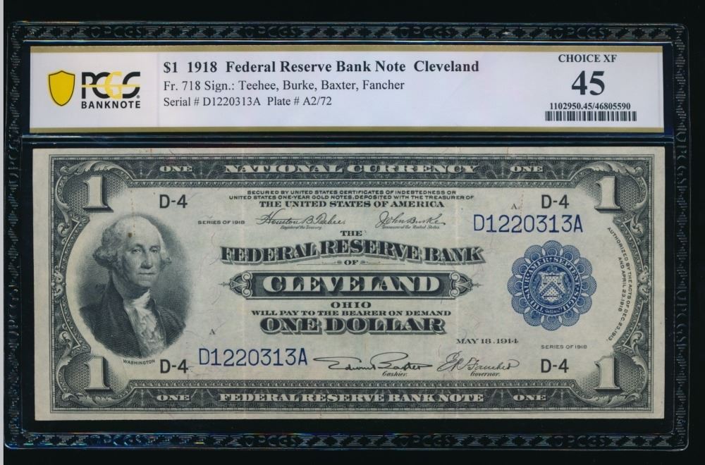 One 1918 $1 Cleveland FRBN PCGS 45.