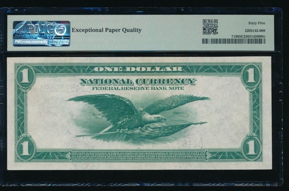 One 1918 $1 Cleveland FRBN PMG 65EPQ.