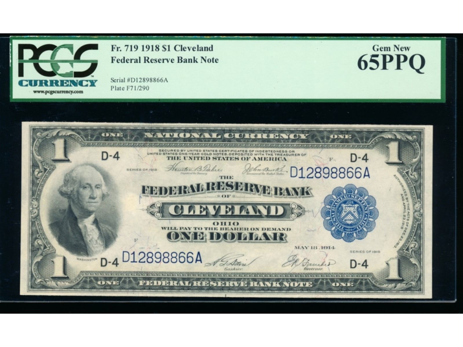 One 1918 $1 Cleveland Federal Reserve Bank Note PCGS 65PPQ.