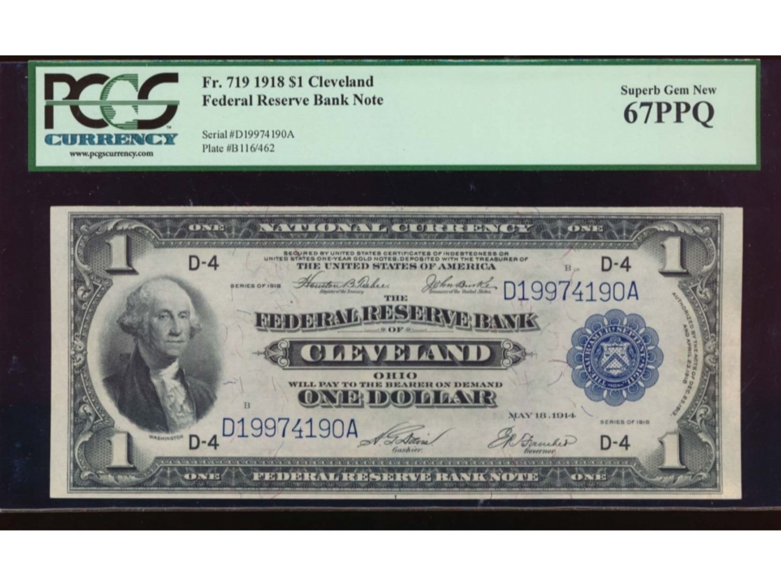 One 1918 $1 Cleveland Federal Reserve Bank Note PCGS 67PPQ.
