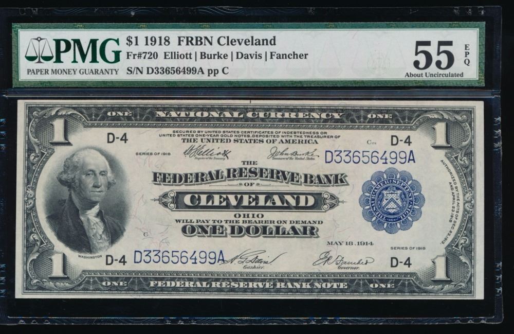 One 1918 $1 Cleveland Federal Reserve Bank Note PMG 55EPQ.