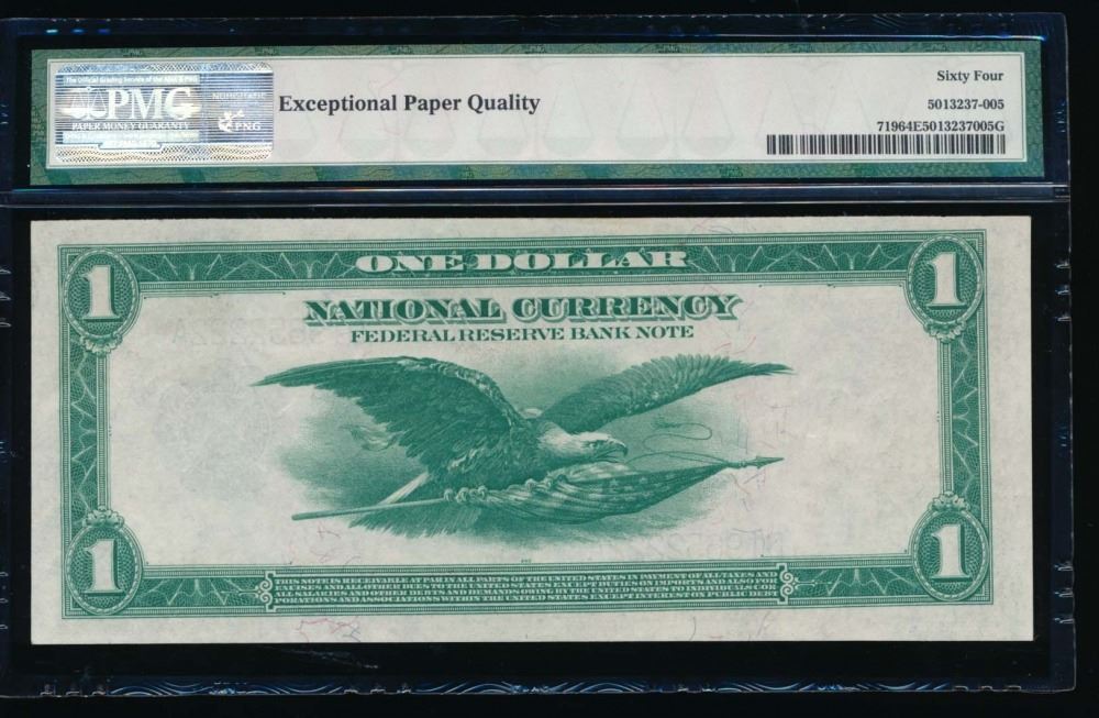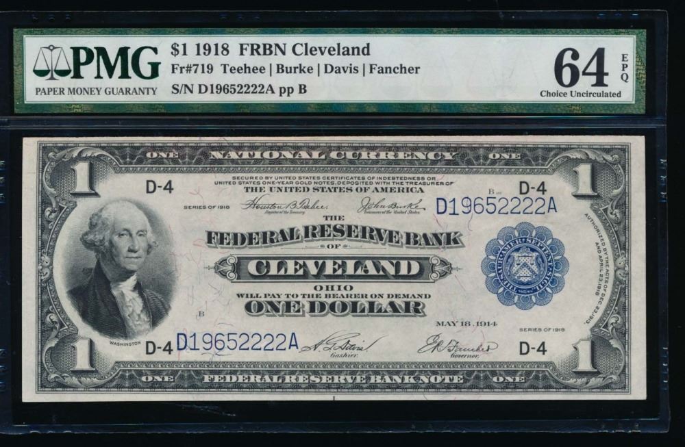 One 1918 $1 Cleveland Federal Reserve Note PMG 64EPQ.