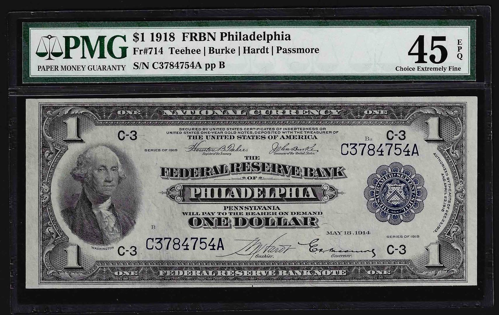 1918 $1 FRBN Philadelphia Currency Note PMG Choice Extremely Fine 45EPQ