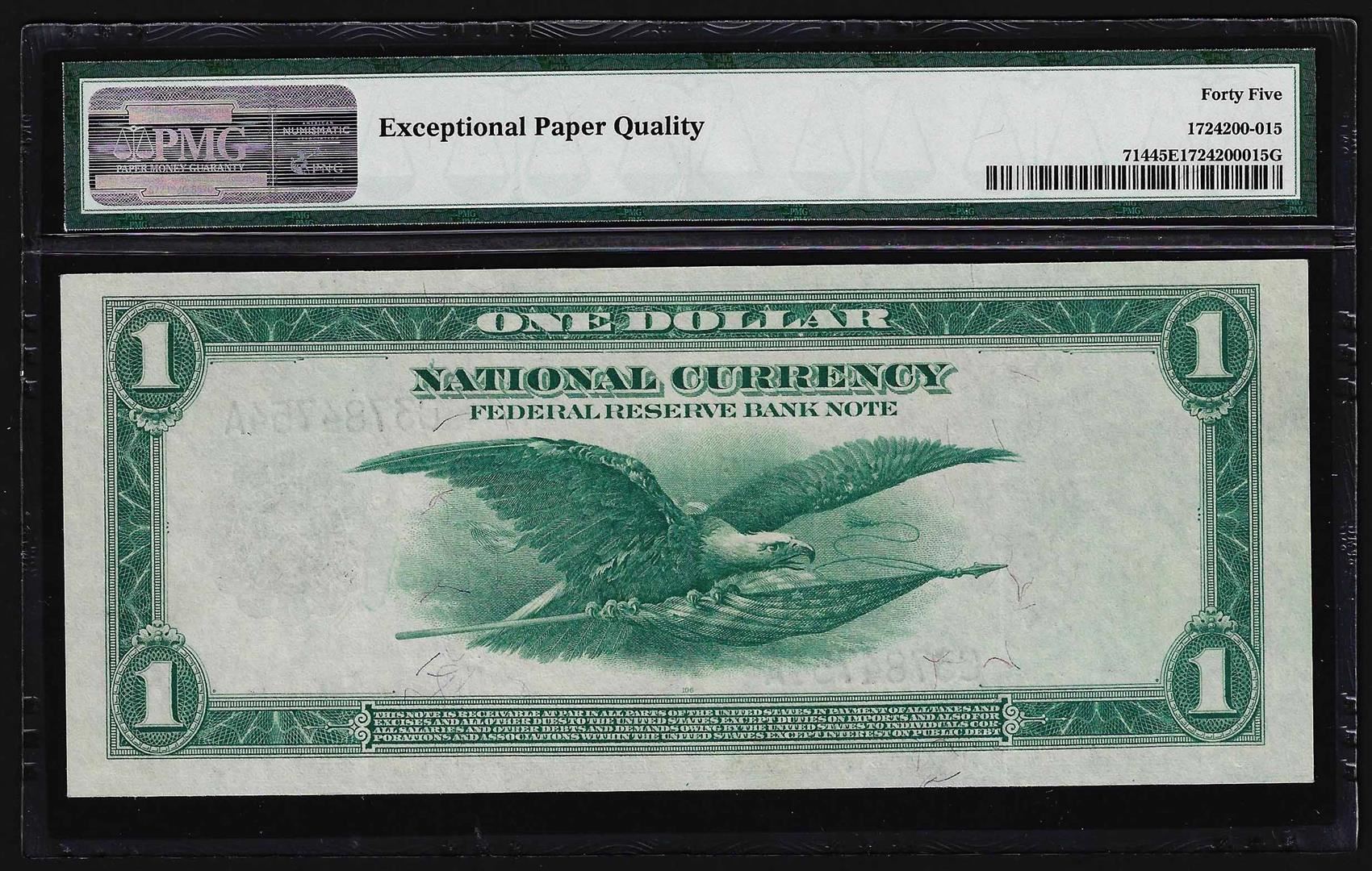 One 1918 $1 FRBN Philadelphia Currency Note PMG Choice Extremely Fine 45EPQ. PMG Certified.