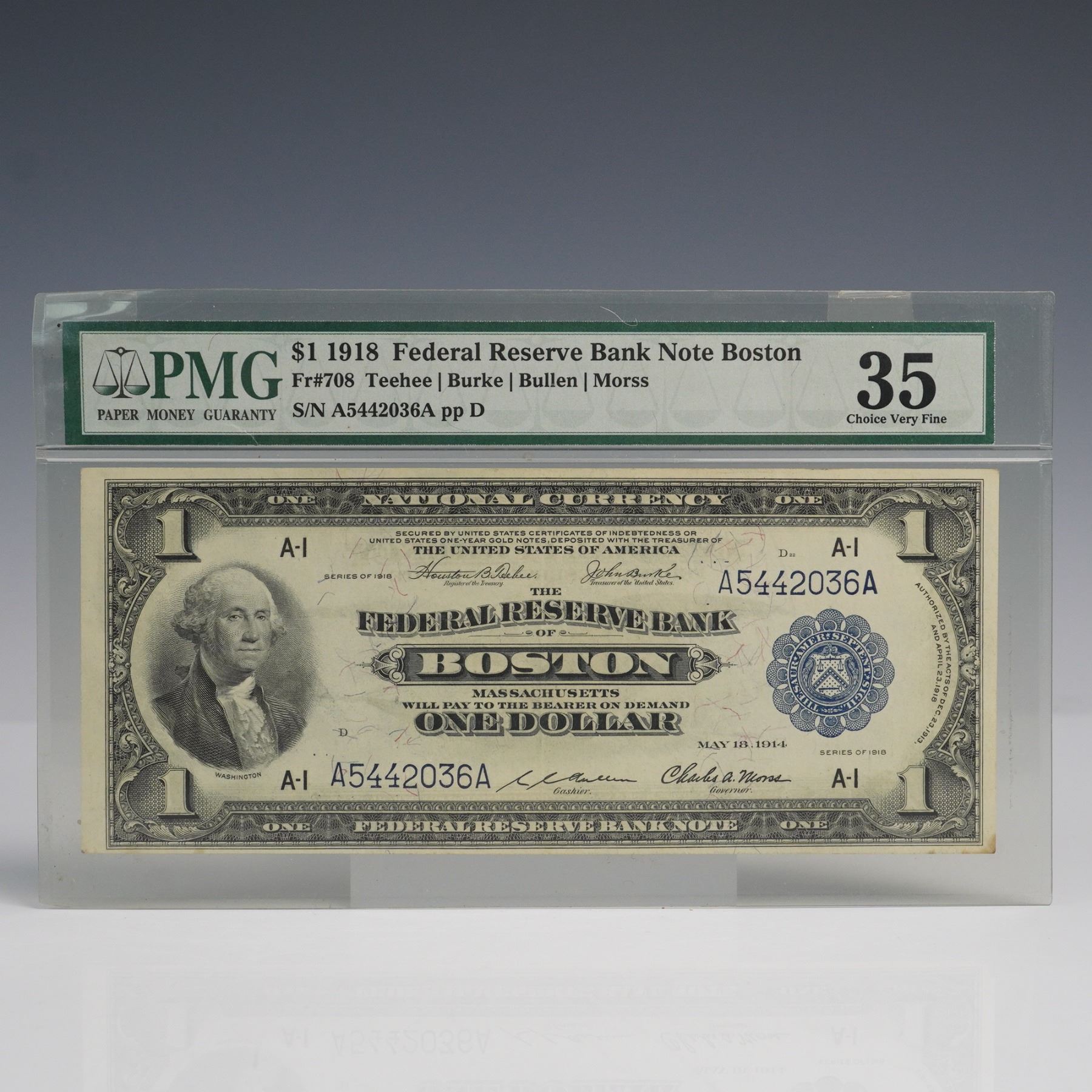 1918 $1 Federal Reserve Bank Boston Banknote PMG Graded 35 Choice Very Fine