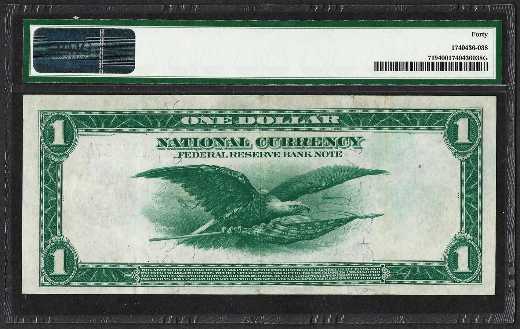 One 1918 $1 Federal Reserve Bank Note Cleveland Fr.719 PMG Extremely Fine 40. PMG Certified.