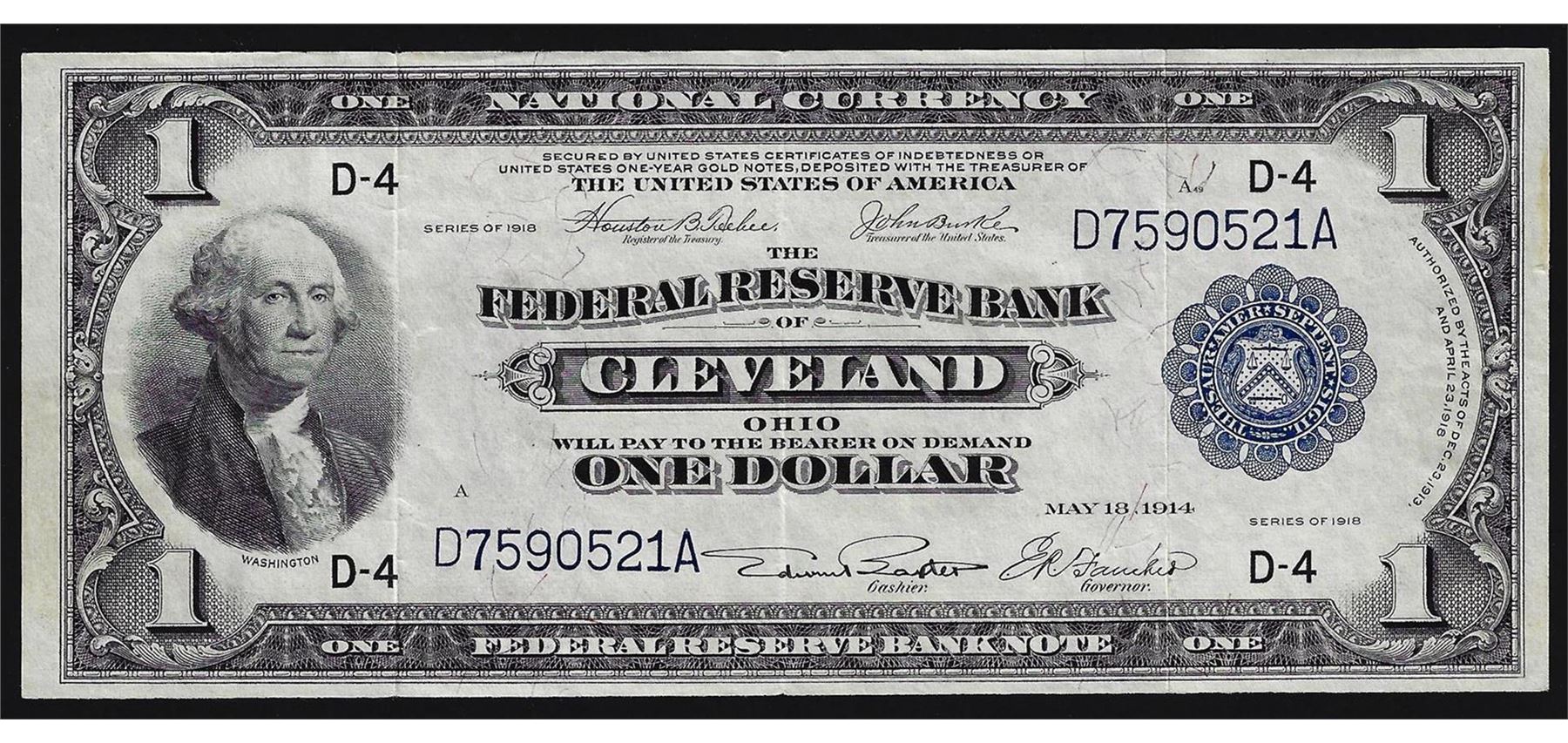 One 1918 $1 Federal Reserve Bank Note Cleveland.