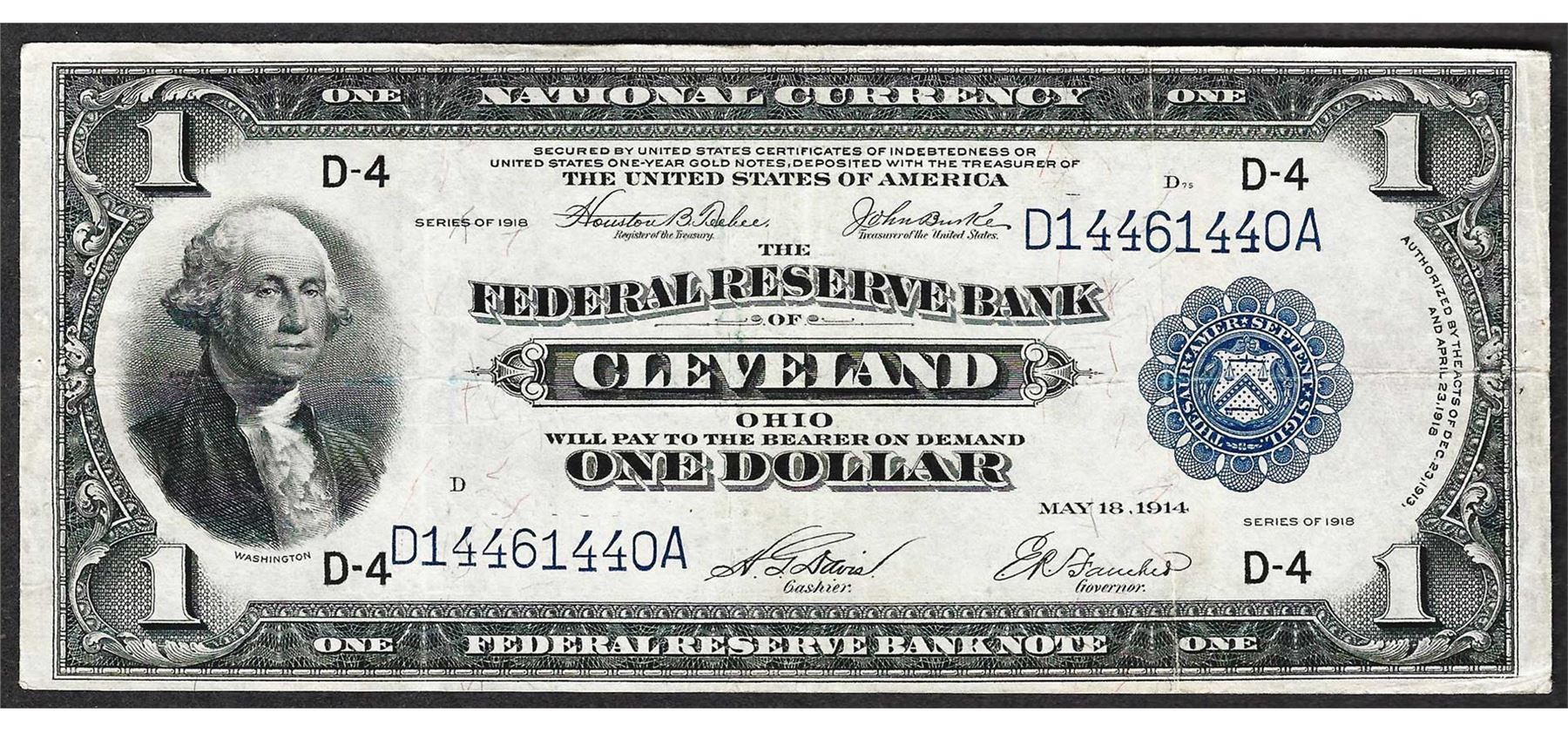 One 1918 $1 Federal Reserve Bank Note Cleveland.