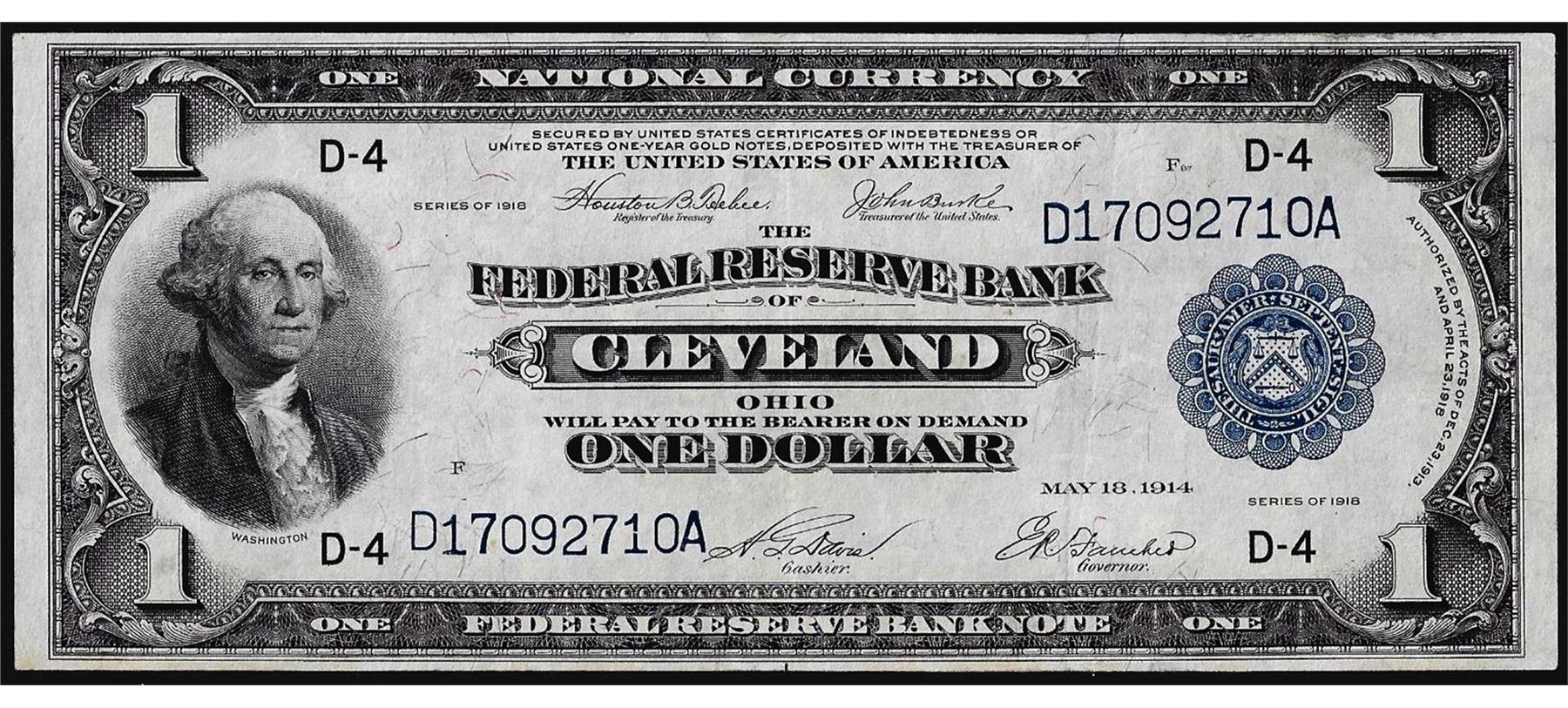 One 1918 $1 Federal Reserve Bank Note Cleveland.