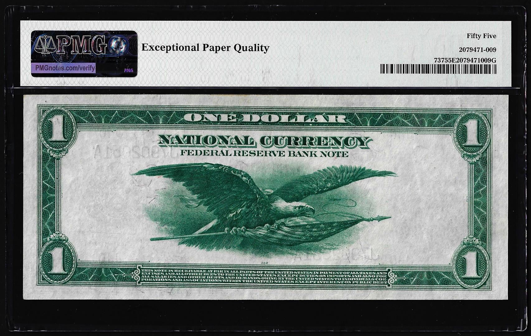 One 1918 $1 Federal Reserve Bank Note Kansas City Fr.737 PMG About Uncirculated 55EPQ. PMG Certified.