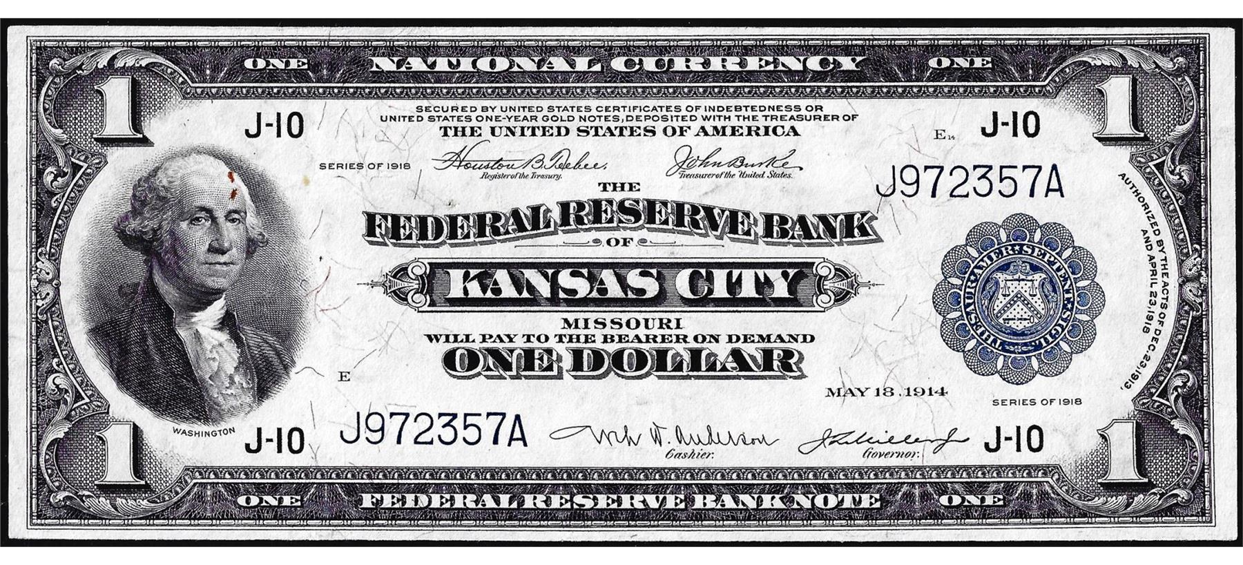 One 1918 $1 Federal Reserve Bank Note Kansas City.