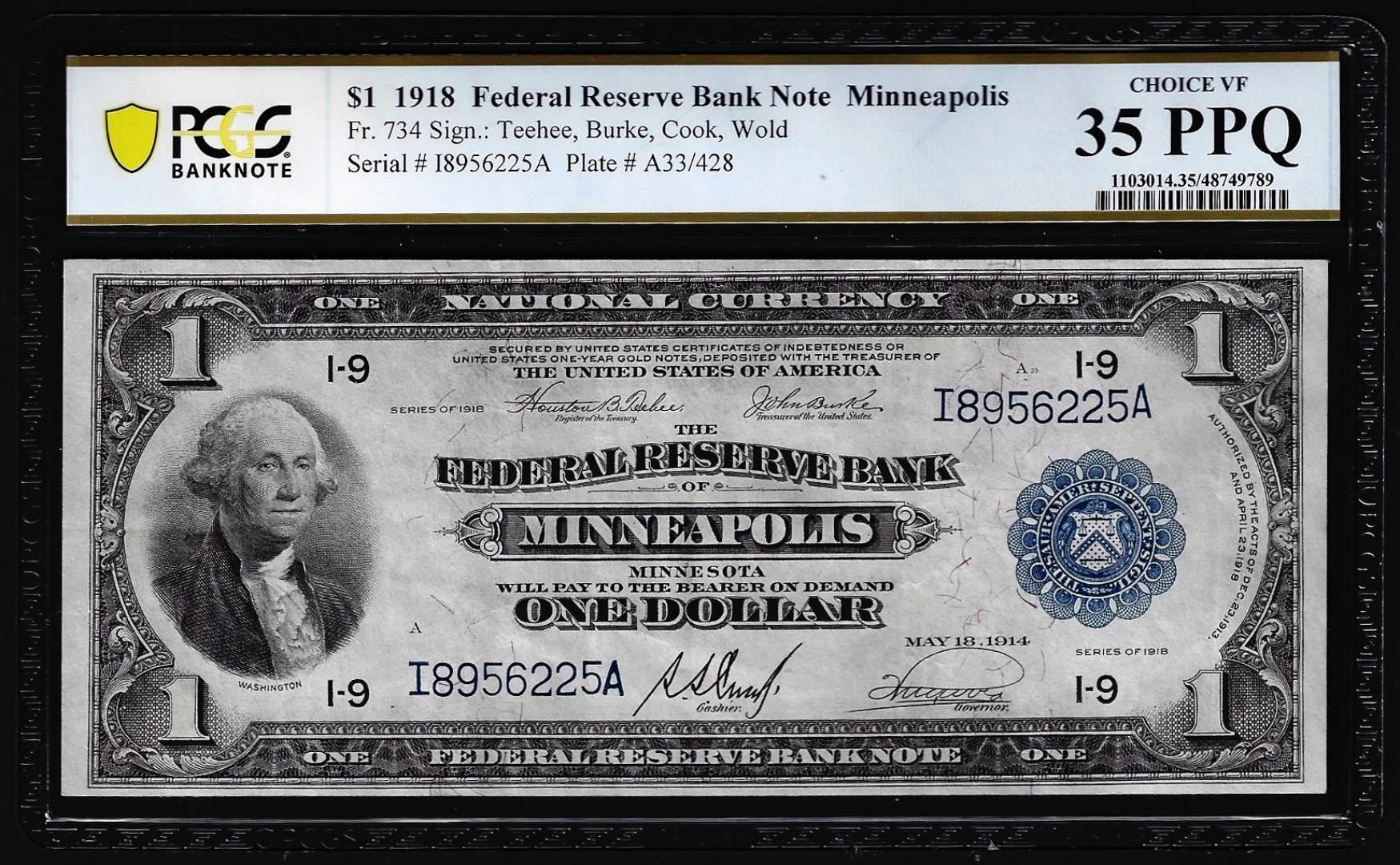 1918 $1 Federal Reserve Bank Note Minneapolis Fr.734 PCGS Choice VF 35PPQ