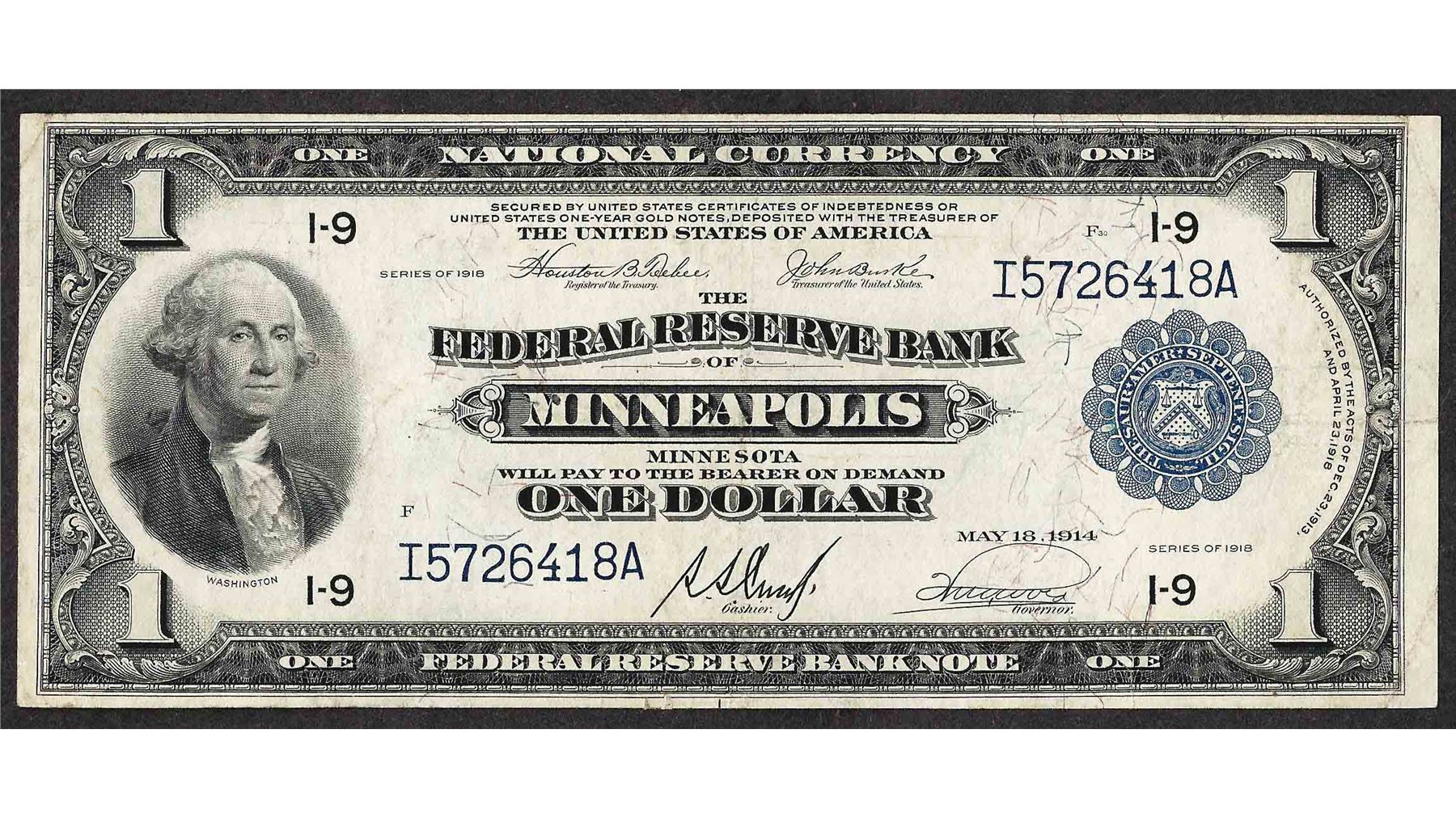 One 1918 $1 Federal Reserve Bank Note Minneapolis.