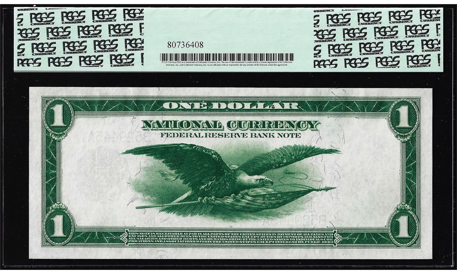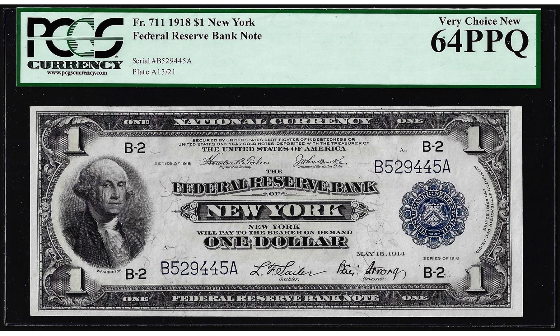 One 1918 $1 Federal Reserve Bank Note New York Fr.711 PCGS Very Choice New 64PPQ. PCGS Graded.
