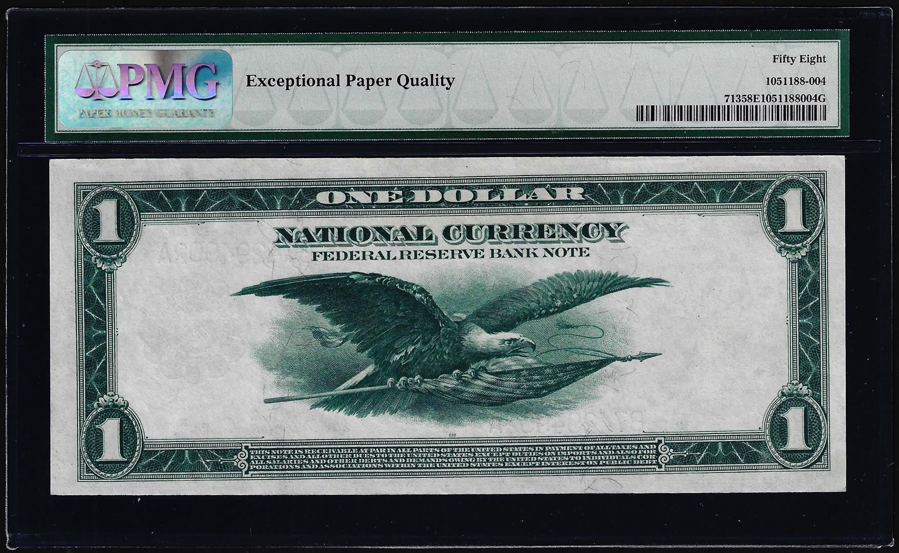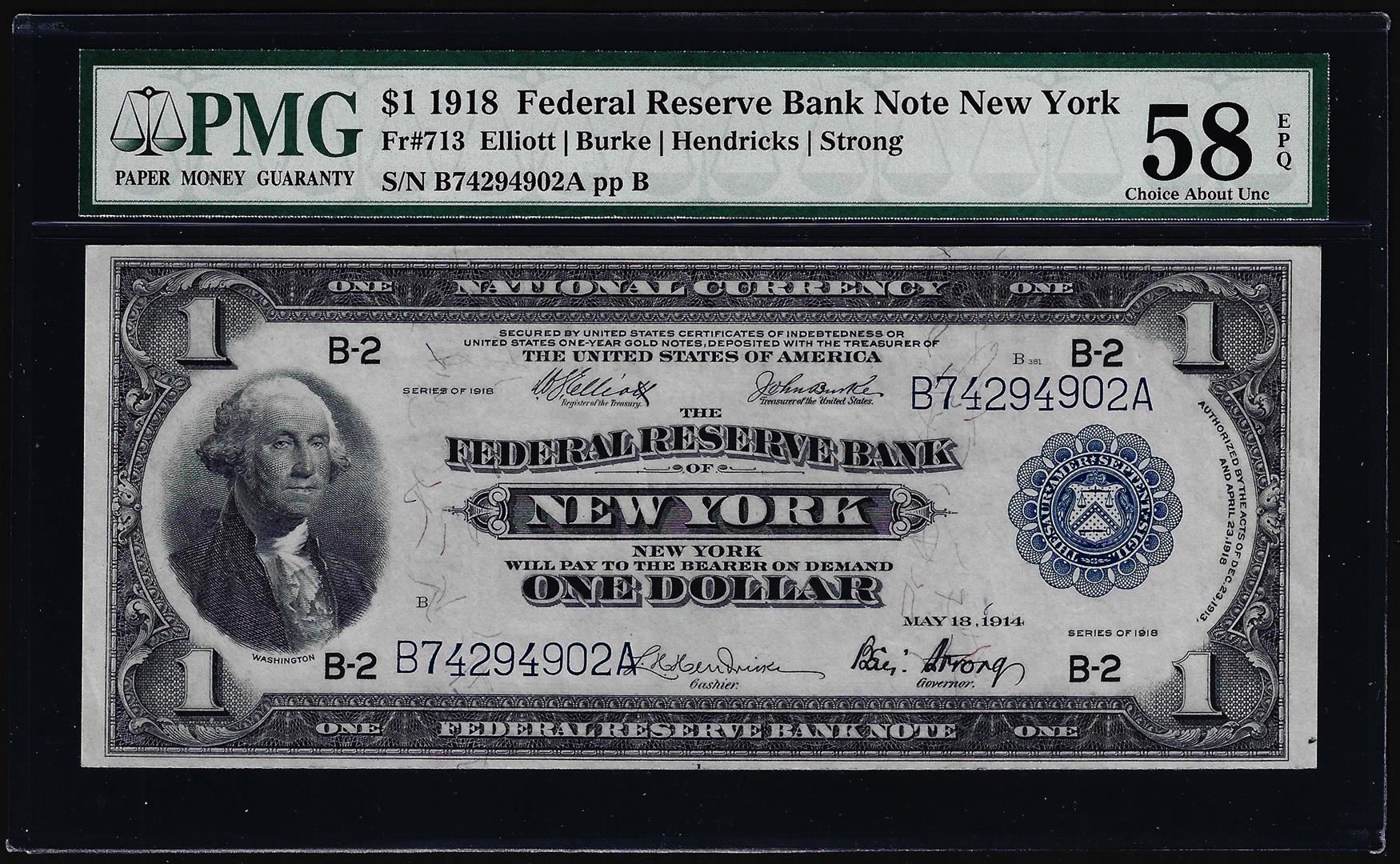 One 1918 $1 Federal Reserve Bank Note New York Fr.713 PMG Choice About Uncirculated 58EPQ. PMG Certified.