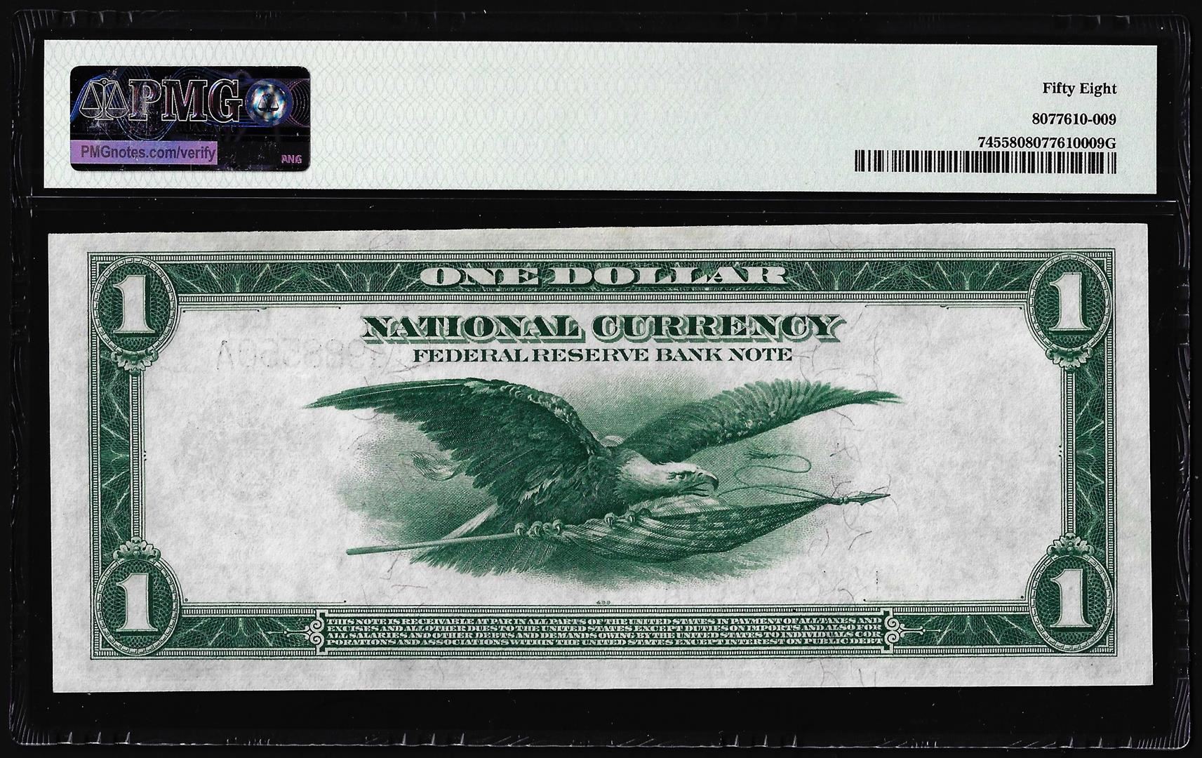 One 1918 $1 Federal Reserve Bank Note San Francisco Fr.745 PMG Choice About Unc. 58. PMG Certified.