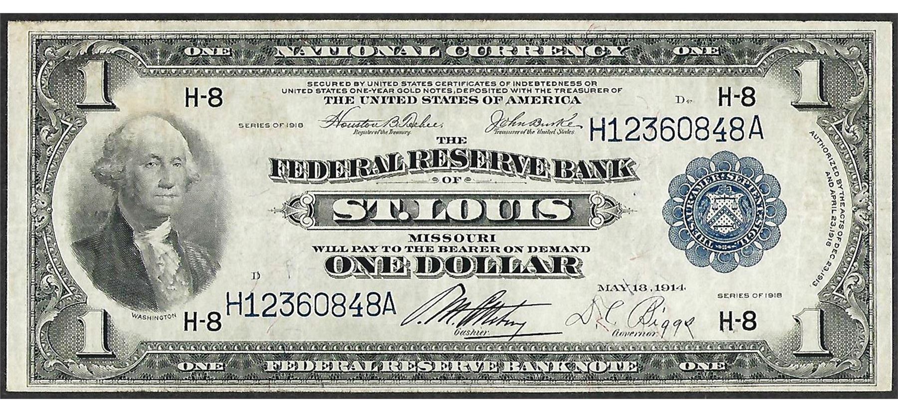One 1918 $1 Federal Reserve Bank Note St. Louis.