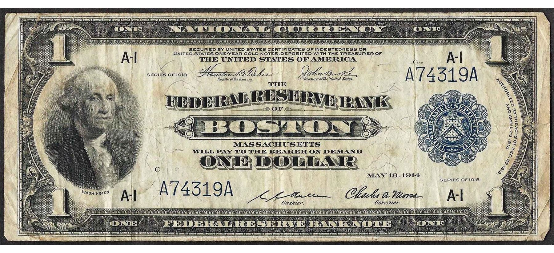 One 1918 $1 Federal Reserve Bank of Boston Note.