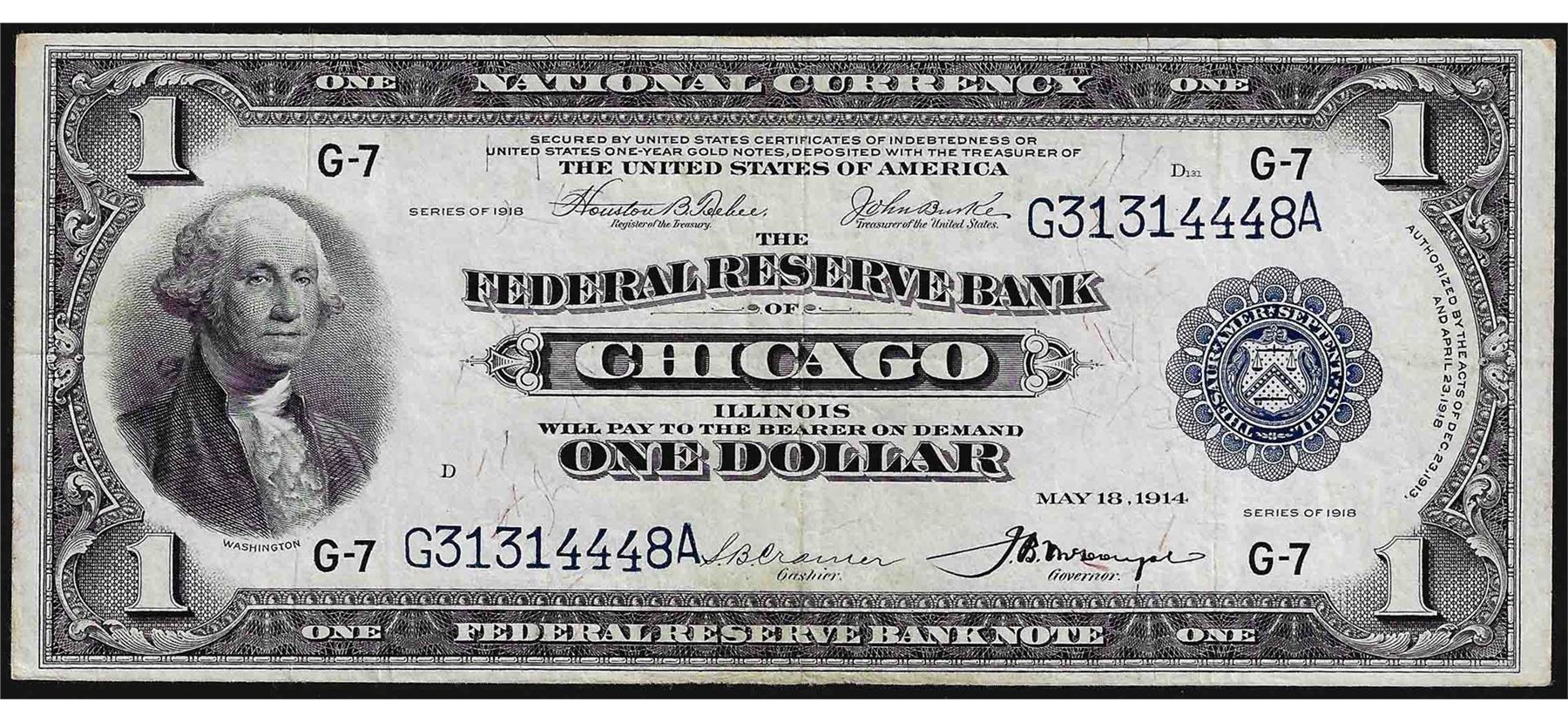 One 1918 $1 Federal Reserve Bank of Chicago Note.