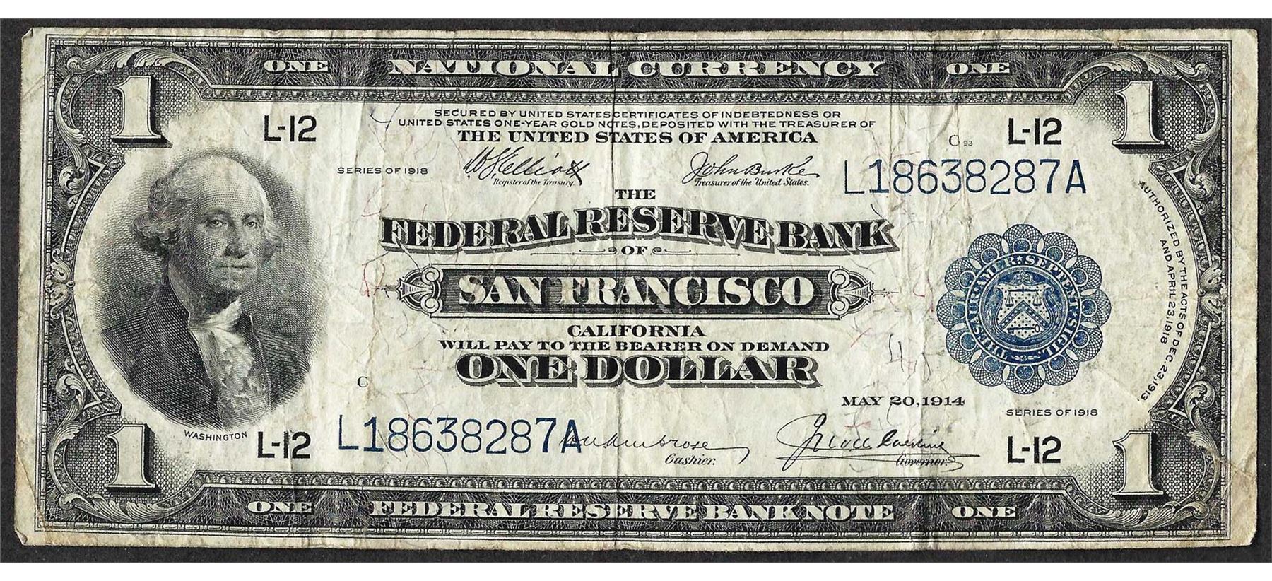 One 1918 $1 Federal Reserve Bank of San Francisco Note.