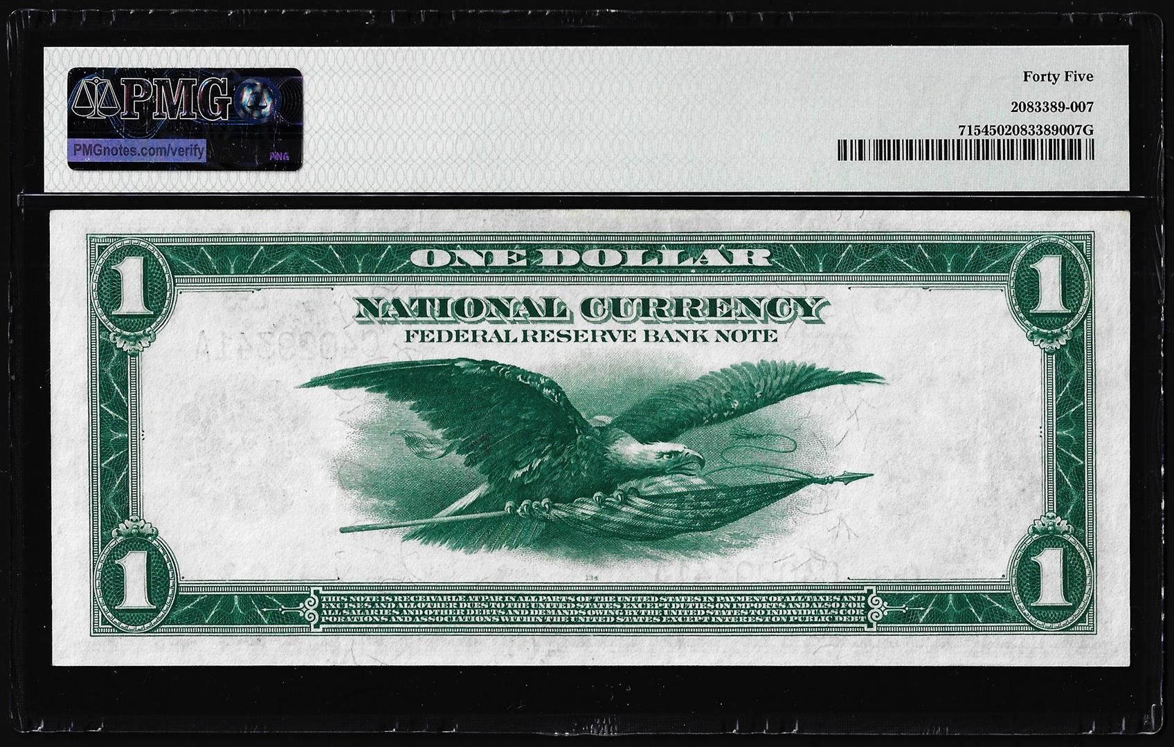 1918 $1 Federal Reserve Note Philadelphia Fr.715 PMG Choice Extremely Fine 45