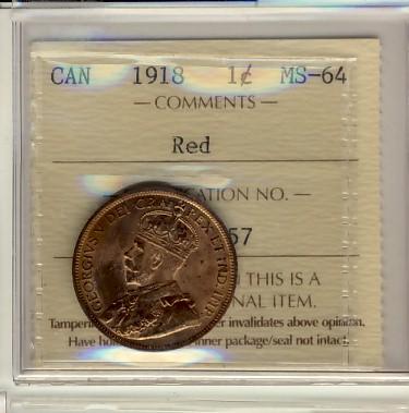 1918 1¢ ICCS MS64 Red