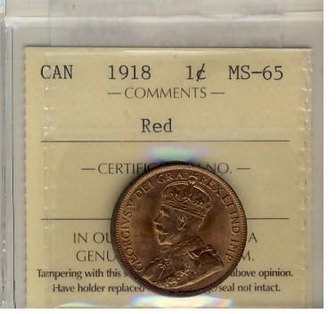 1918 1¢ ICCS MS65RD. 95% red and attractive.