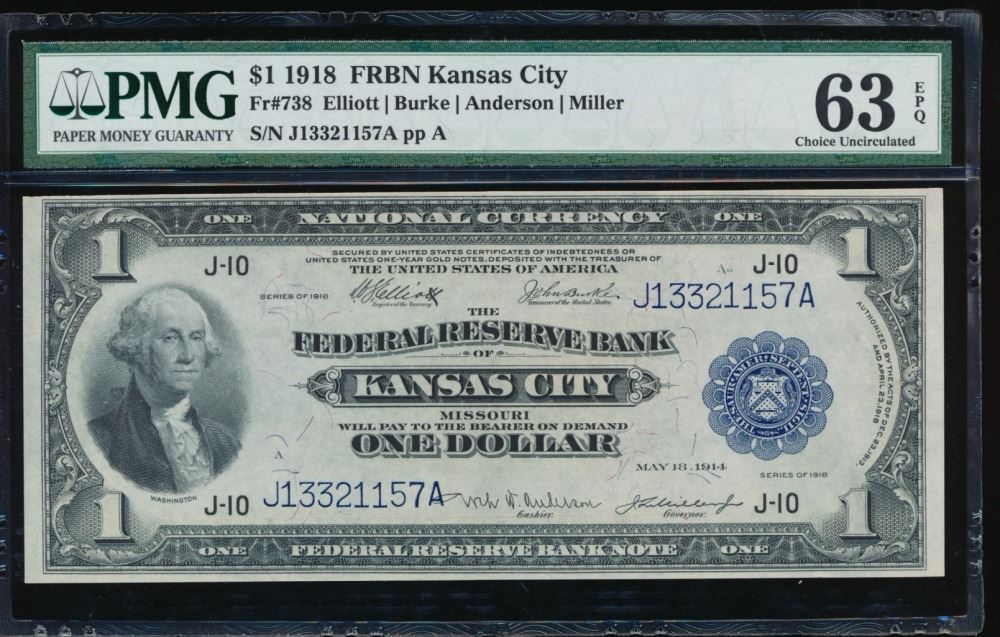 One 1918 $1 Kansas City Federal Reserve Bank Note PMG 63EPQ.