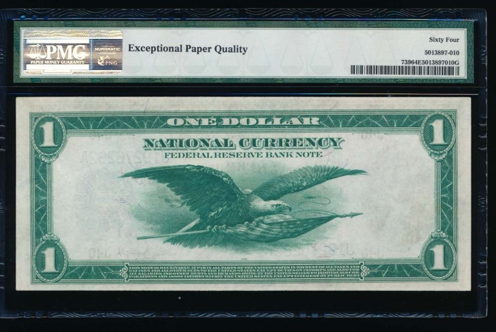 One 1918 $1 Kansas City Federal Reserve Bank Note PMG 64EPQ.