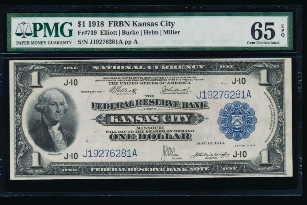 One 1918 $1 Kansas City Federal Reserve Bank Note PMG 65EPQ.