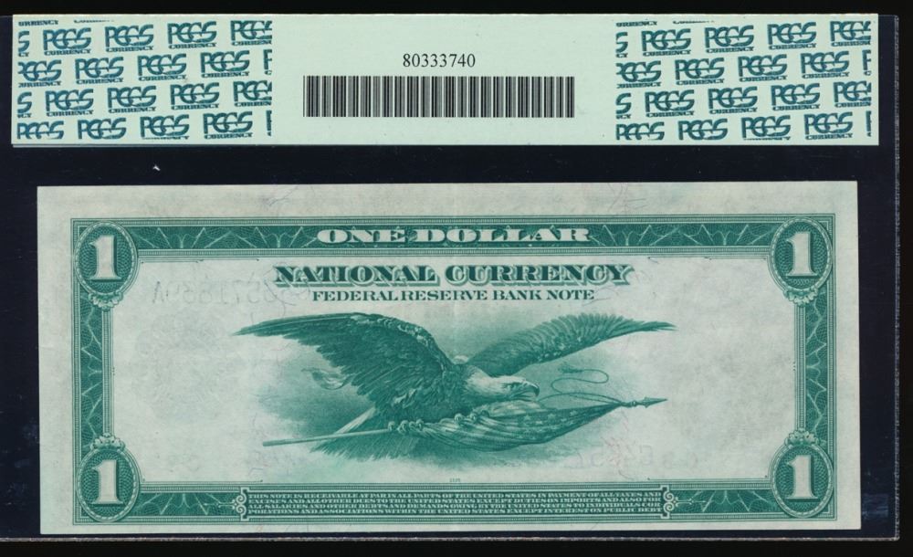 One 1918 $1 Large Philadelphia Federal Reserve Note PCGS 55PPQ.