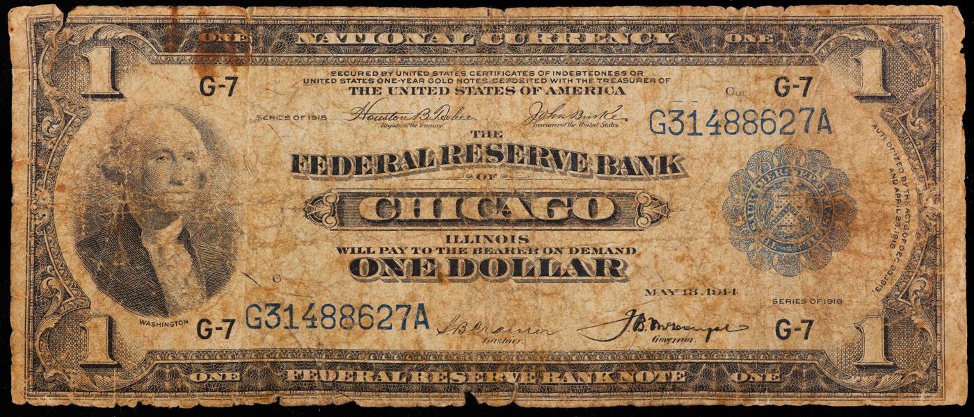 1918 $1 National Currency "Flying Eagle" Federal Reserve Bank of Chicago, IL Fr-728, Sig. Teehee, Bu