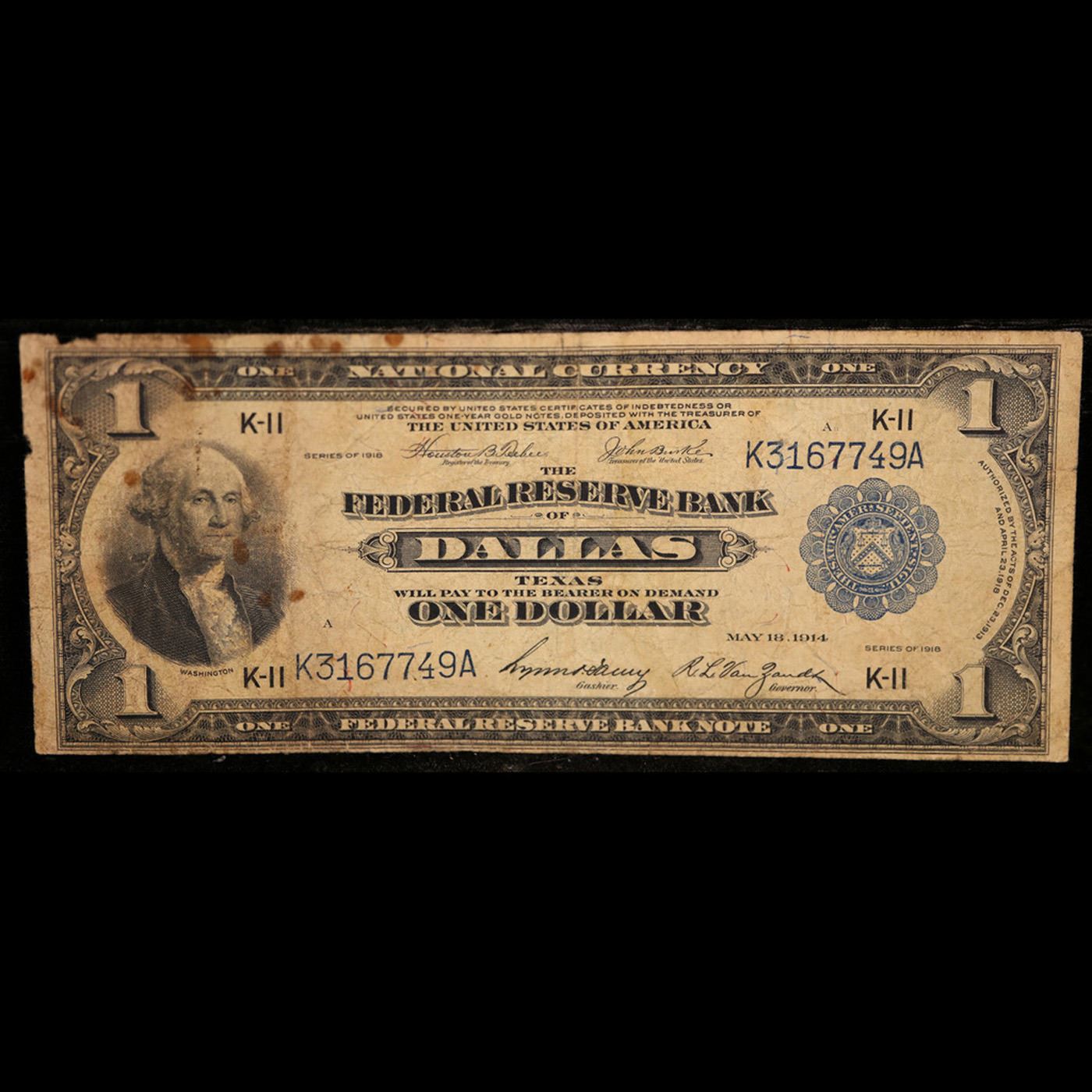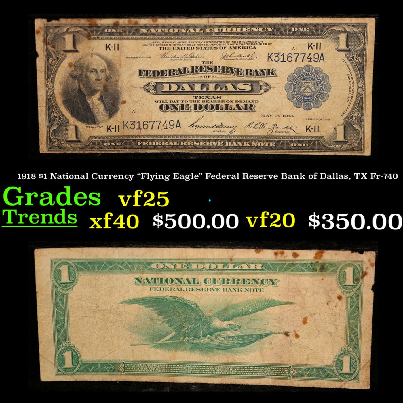 1918 $1 National Currency "Flying Eagle" Federal Reserve Bank of Dallas, TX Fr-740 Grades vf+.