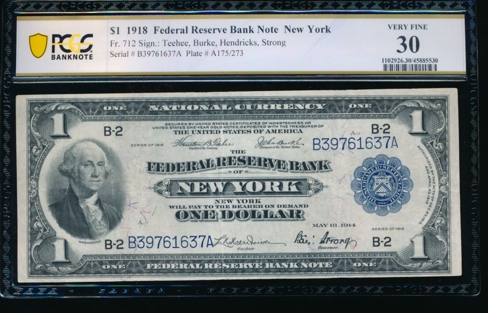 One 1918 $1 New York FRBN PCGS 30.