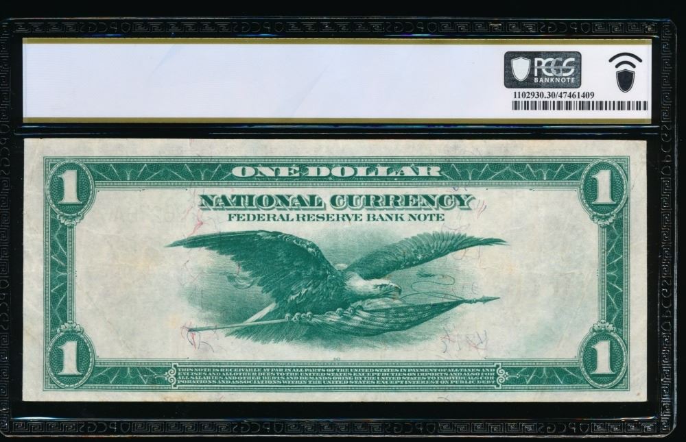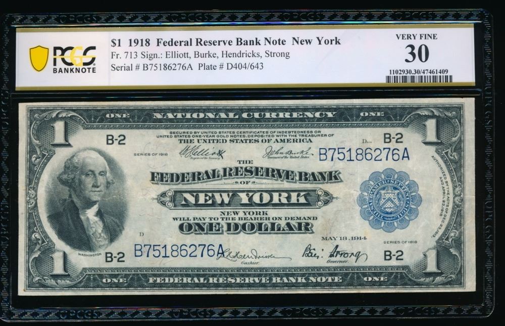 One 1918 $1 New York FRBN PCGS 30.