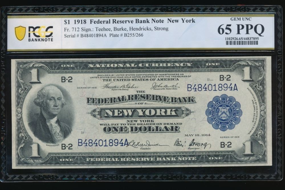 One 1918 $1 New York FRBN PCGS 65PPQ.