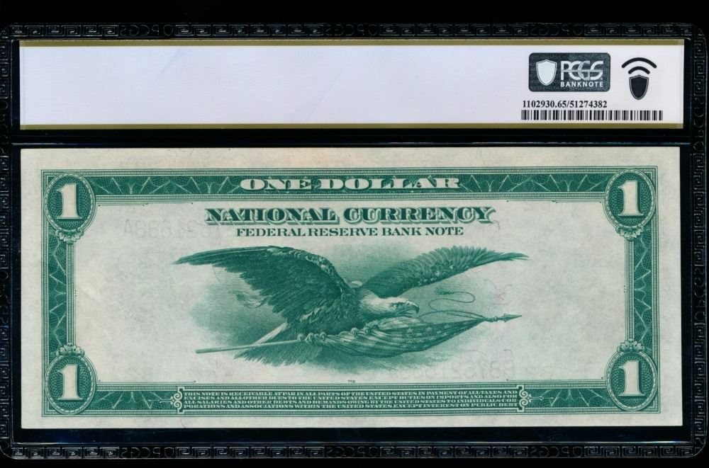 One 1918 $1 New York FRBN PCGS 65PPQ.