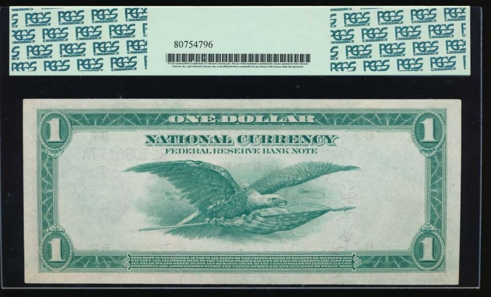 One 1918 $1 New York Federal Reserve Bank Note PCGS 58.