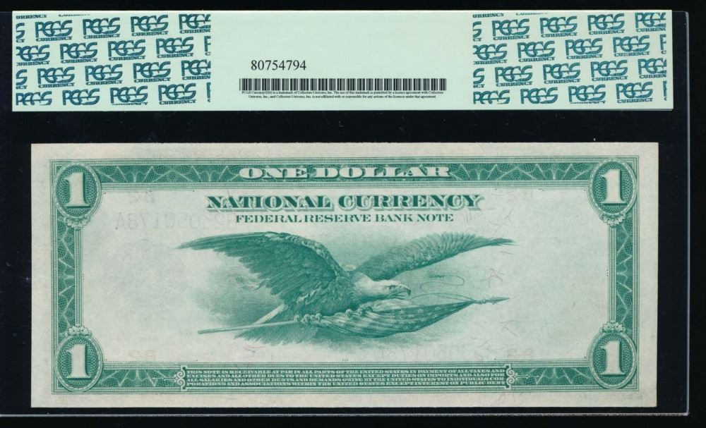 One 1918 $1 New York Federal Reserve Bank Note PCGS 58.